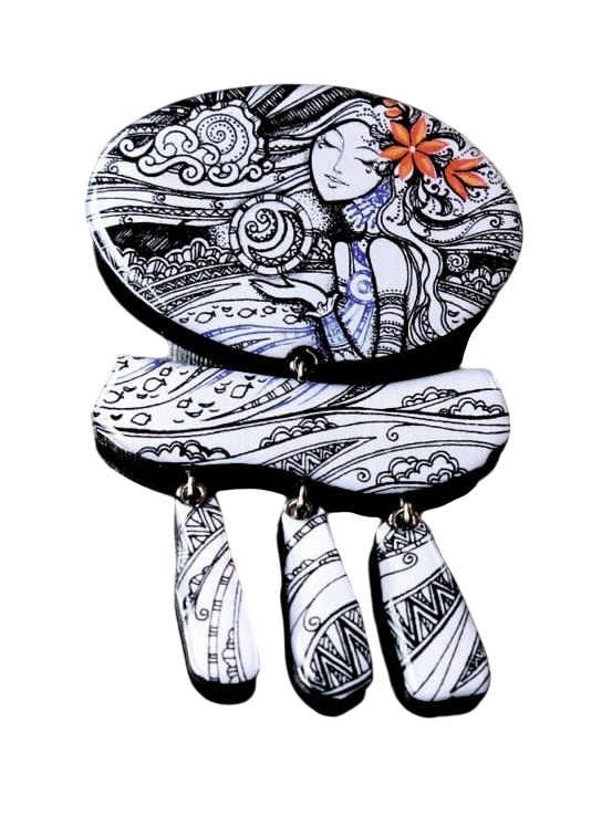 Брошь с изображением образа великой сибирской реки Лены, воплощенной в виде прекрасной девушки.