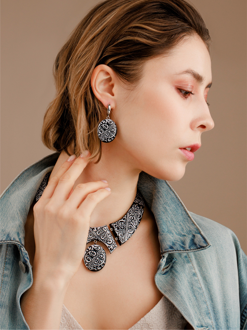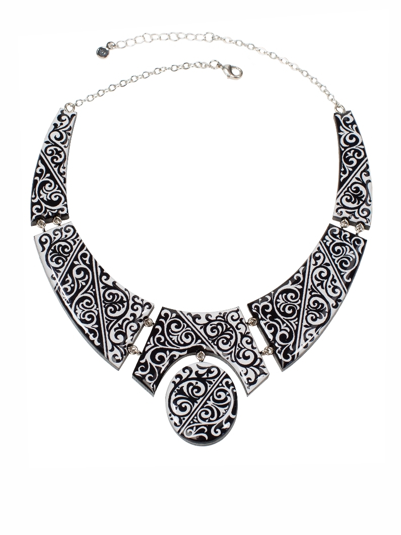 Роскошное, эффектное нагрудное украшение с национальным колоритом. Этот черно-белый аксессуар понравится тем, кто ценит акцентные детали в образе.