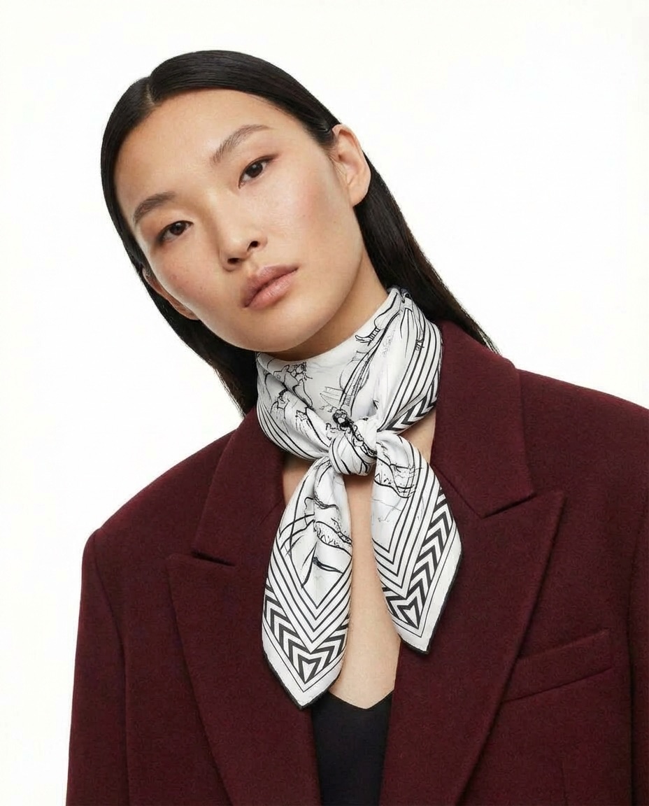Классический квадратный формат позволяет носить платок как накидку, шарф, аксессуар на волосы, пальто или сумку.