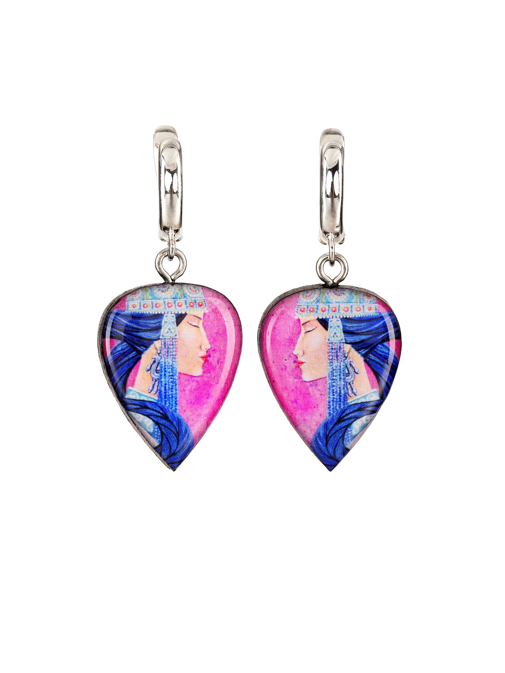 Стильные яркие серьги с необычным рисунком – девушки в национальном костюме. Серьги прекрасно подчеркнут твою разностороннюю натуру, а яркий дизайн поможет выразить настроение.