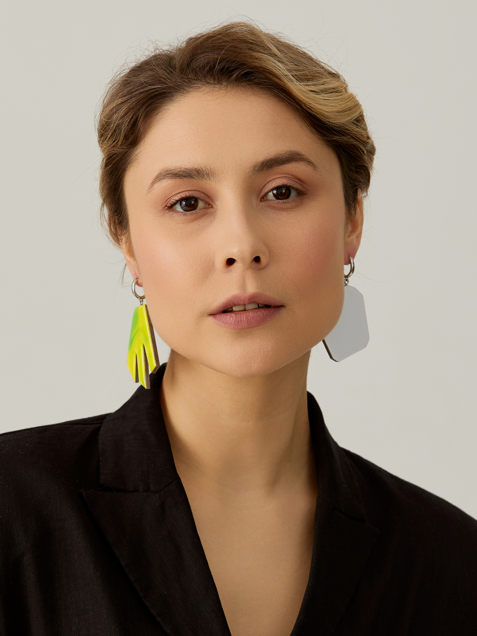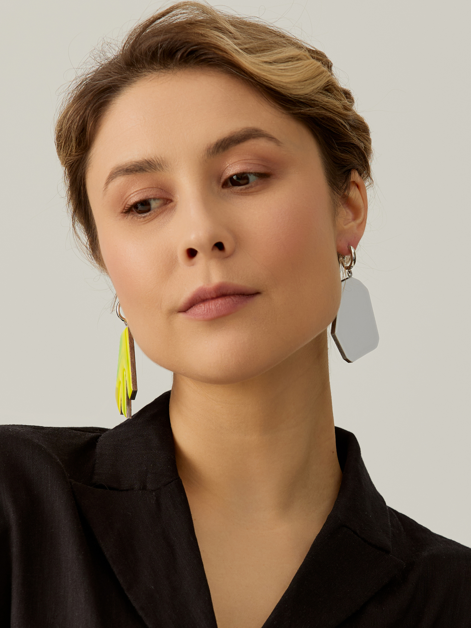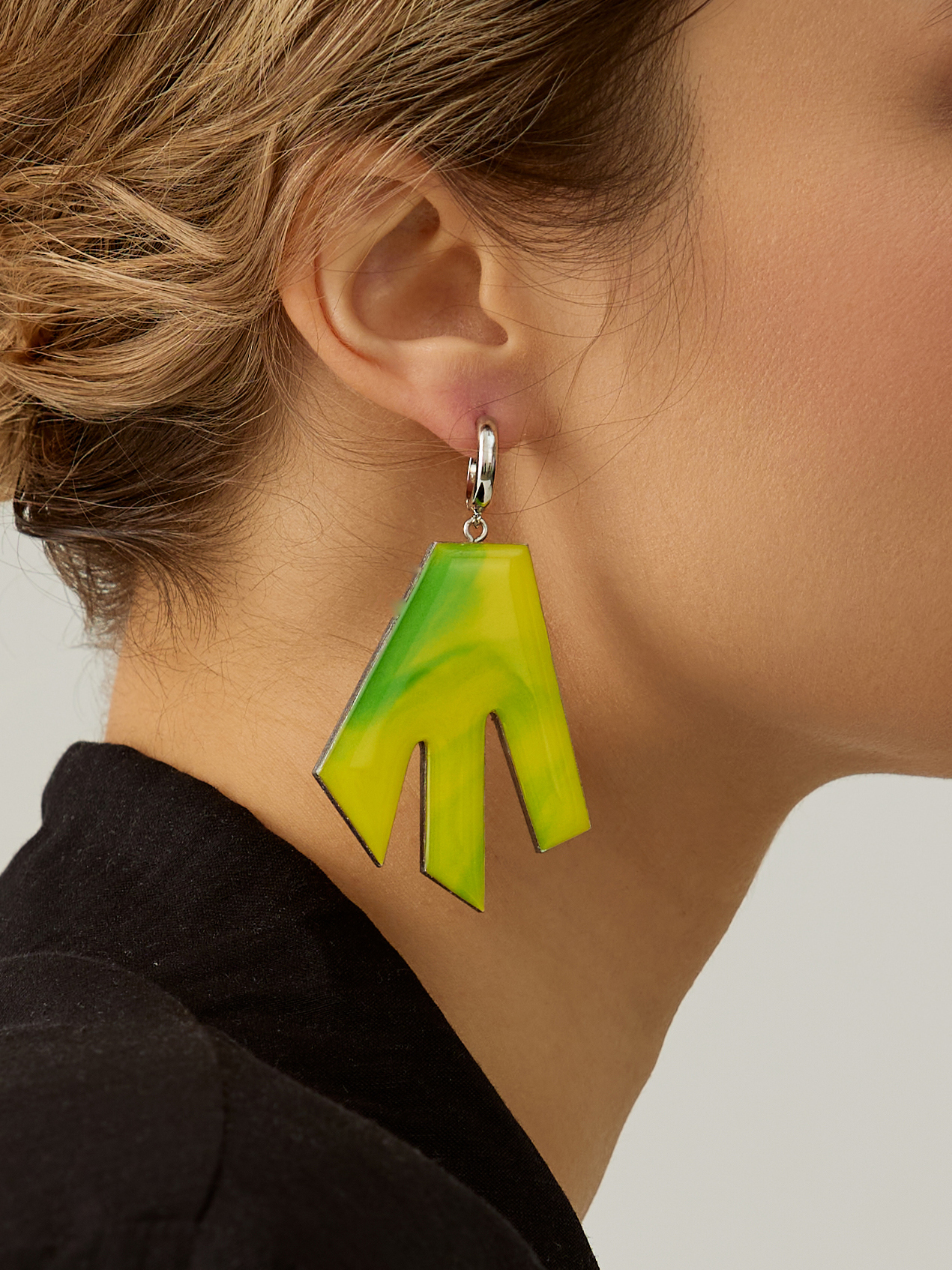 Асимметричные серьги оригинальной формы. Белый цвет символизирует чистоту, невинность и свет, а желтый приносит ассоциации с солнцем, радостью и энергией. Такое сочетание цветов создает яркий и эффектный контраст, придающий серьгам особый шарм и стиль. Асимметрия в дизайне подчеркивает креативность и оригинальность украшения, делая его модным и современным.