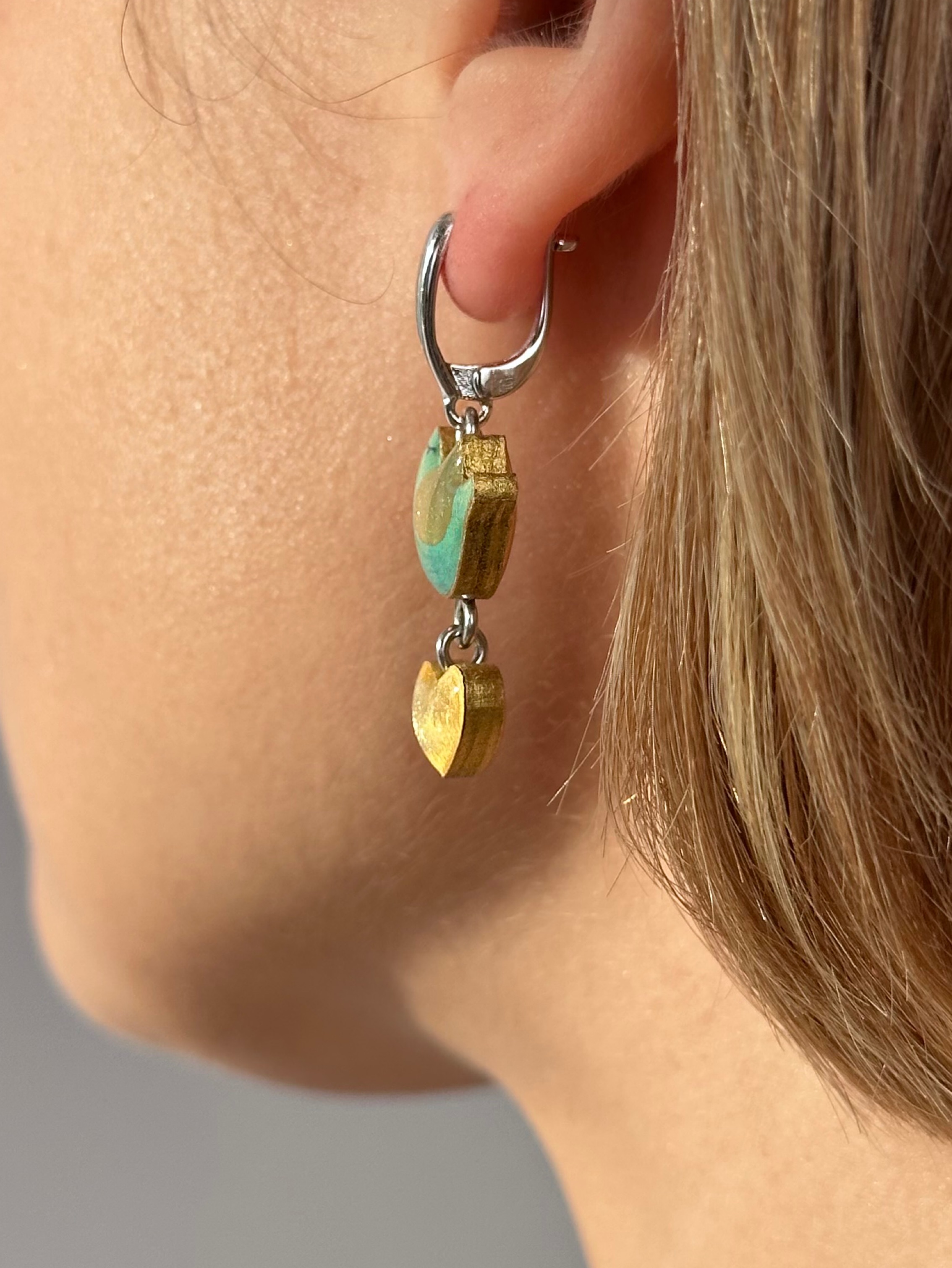 Бижутерия Raisa Plettserr - это всегда результат вдохновения и кропотливой ручной работы. Относительно своих размеров серьги легкие, хотя смотрятся очень массивно, секрет в том, что основа деревянная. Поверх рисунка и задние поверхности заливаем ювелирной смолой, покрываем защитным лаком. Задние и боковые поверхности золотистого цвета. Фурнитура родированная, такая фурнитура не темнеет и на 100% гипоаллергенна.