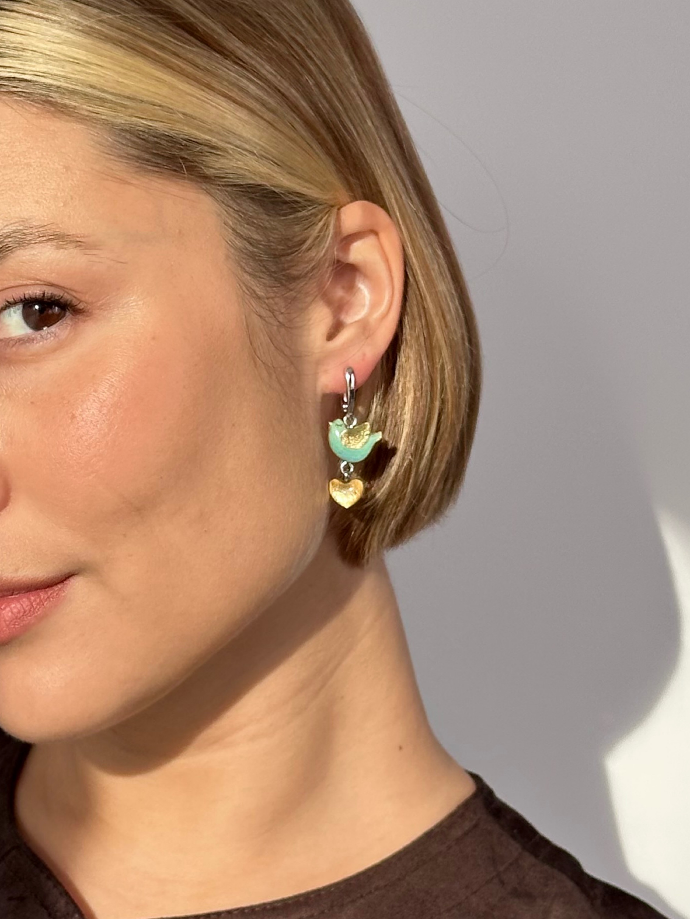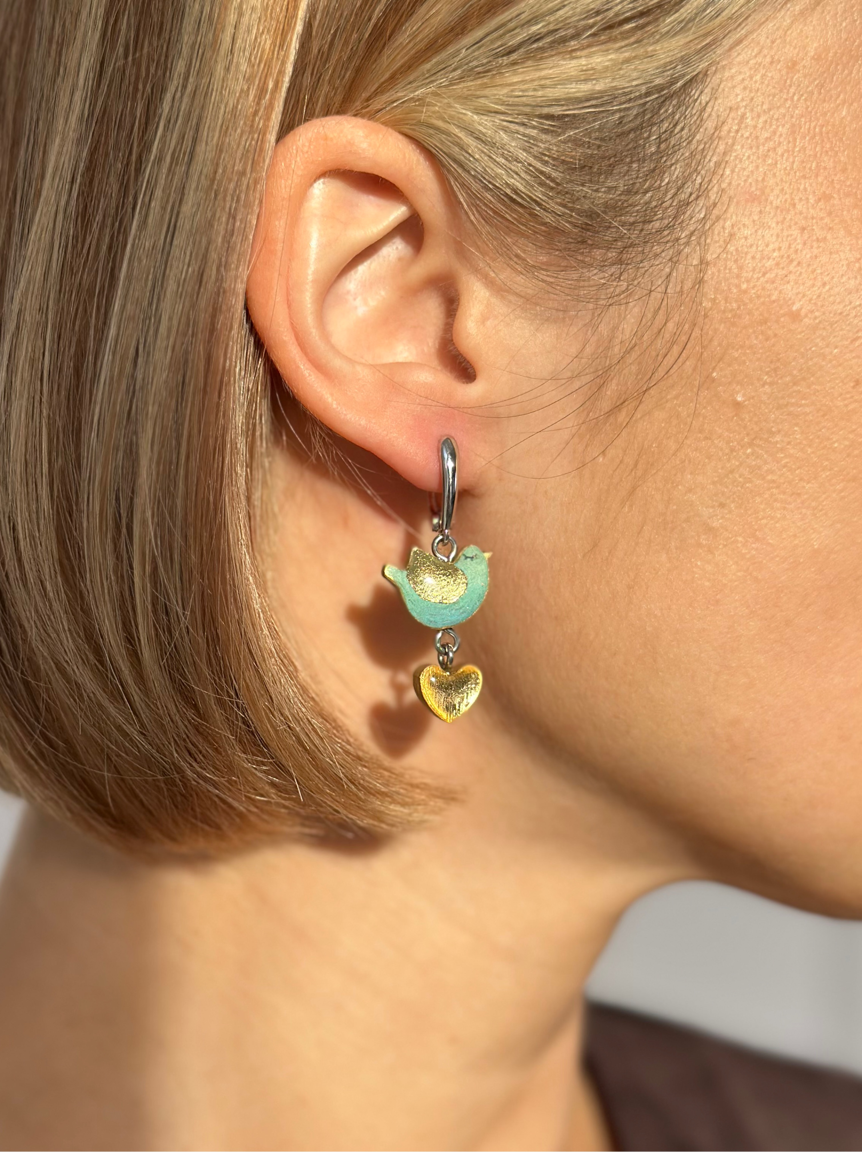 Нежные серьги с птицей. Идеальный вариант для создания романтичного и свежего образа. Птица - символ удачи, свободы и независимости, духовности и вдохновения.