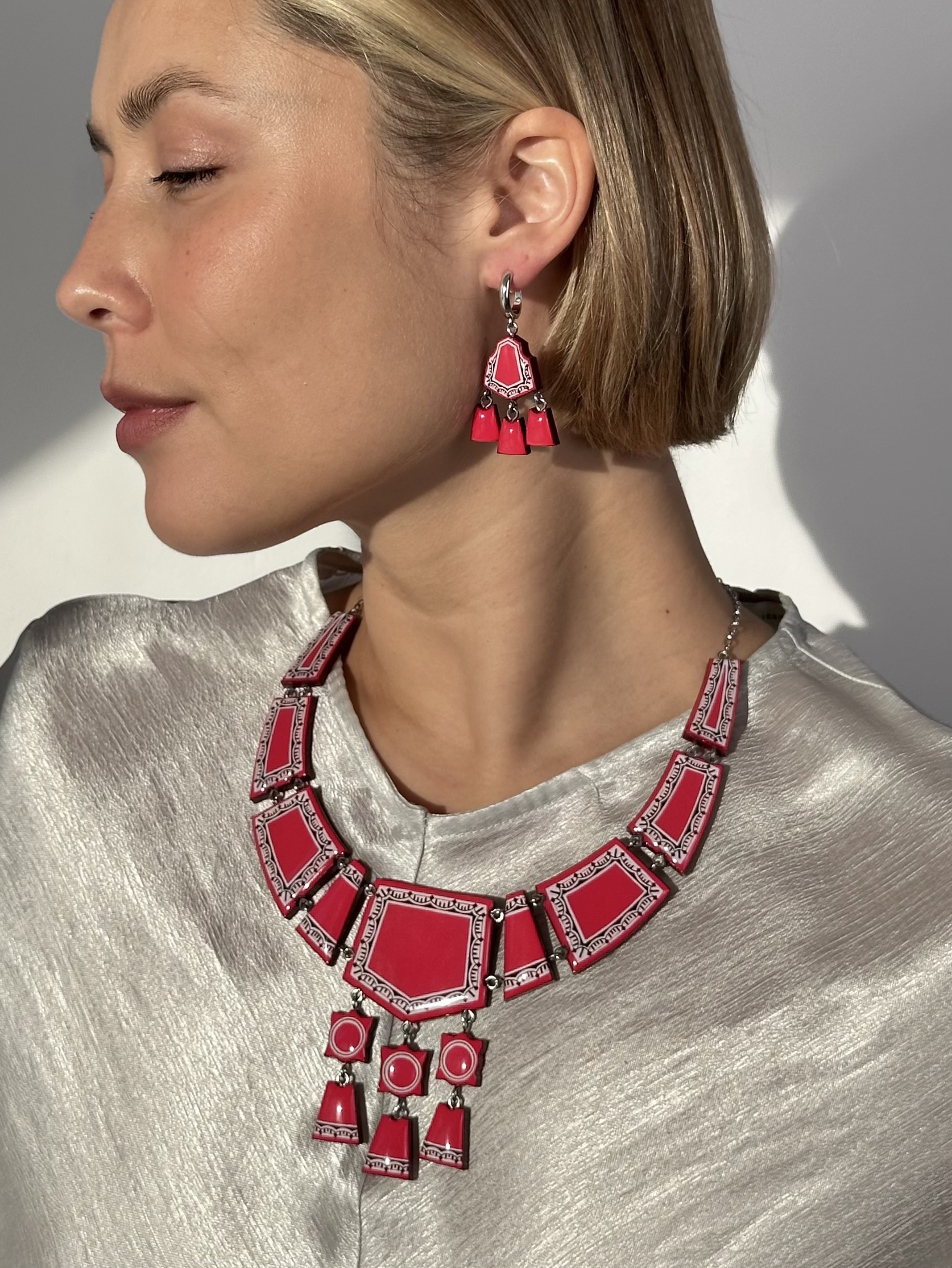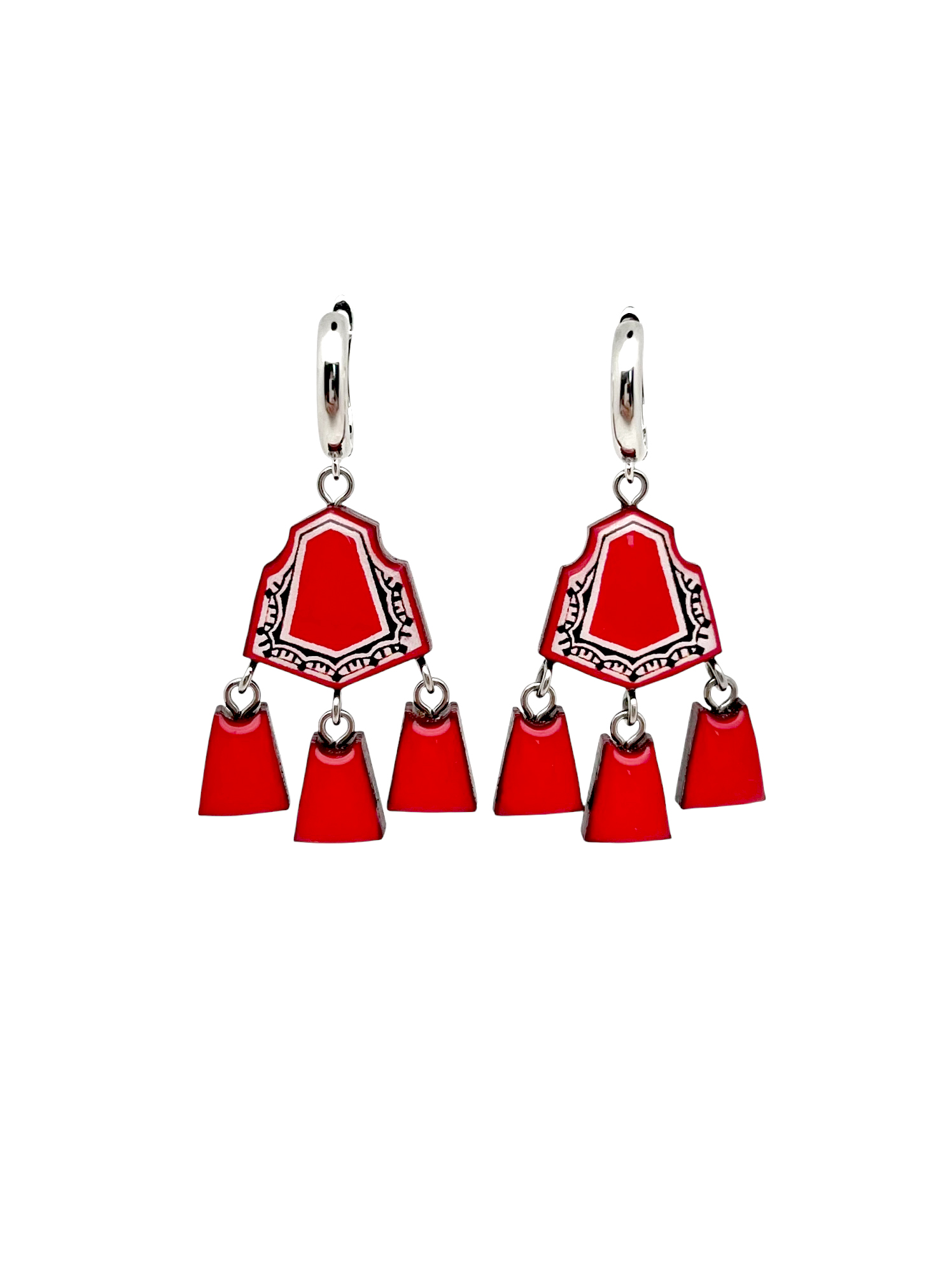 Шикарные этно серьги в красном цвете с орнаментом.