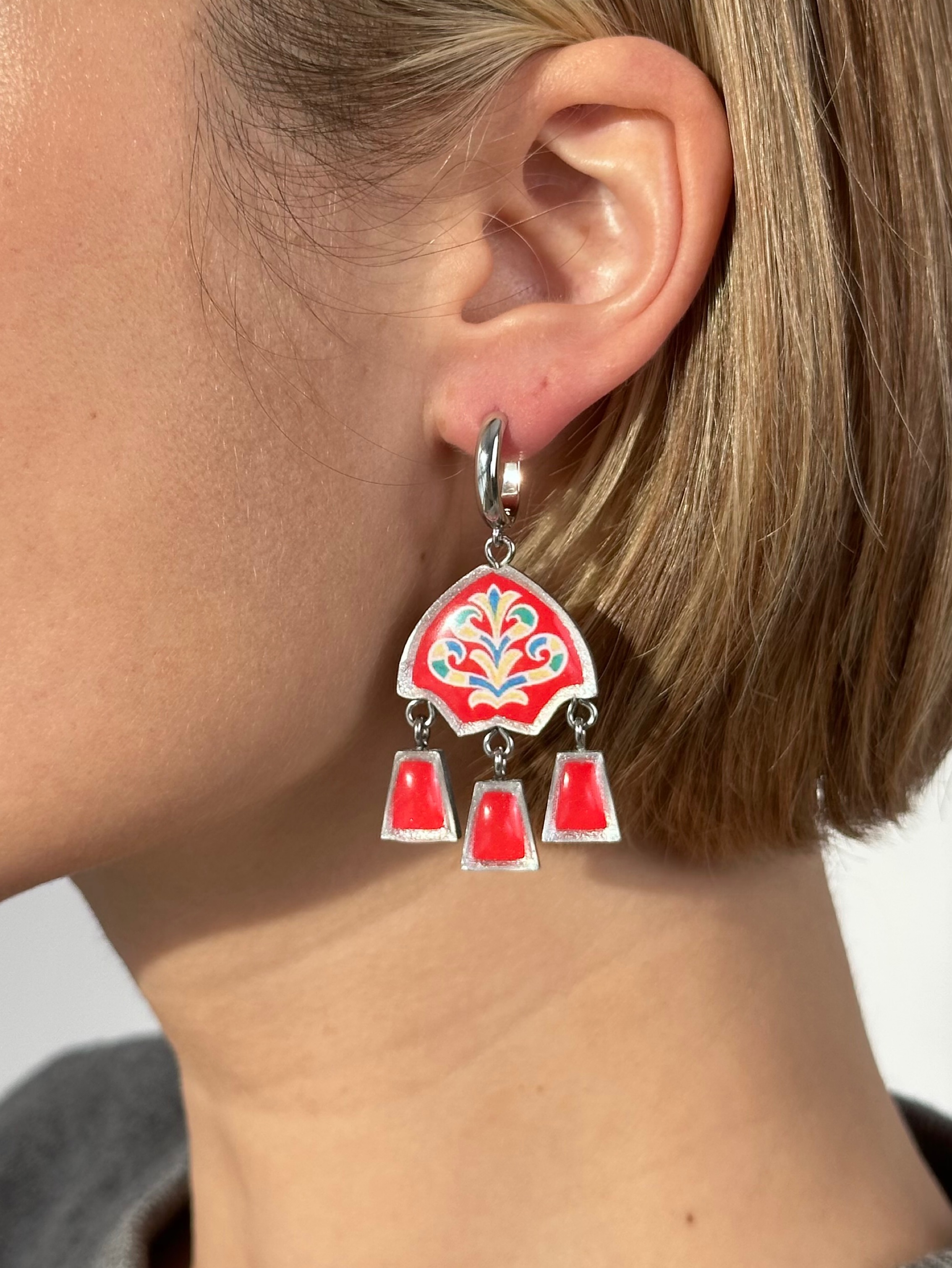 Бижутерия Raisa Plettserr - это всегда результат вдохновения и кропотливой ручной работы. Серьги деревянные, поэтому легкие несмотря на свои размеры. Поверх рисунка и задняя поверхность залиты ювелирной смолой. Задние и боковые поверхности серебристого цвета. Фурнитура родированная, такая фурнитура не темнеет и на 100% гипоаллергенна. Замок классический английский. Серьги продаются в красивой подарочной упаковке из дизайнерского картона, который не помнется при доставке.