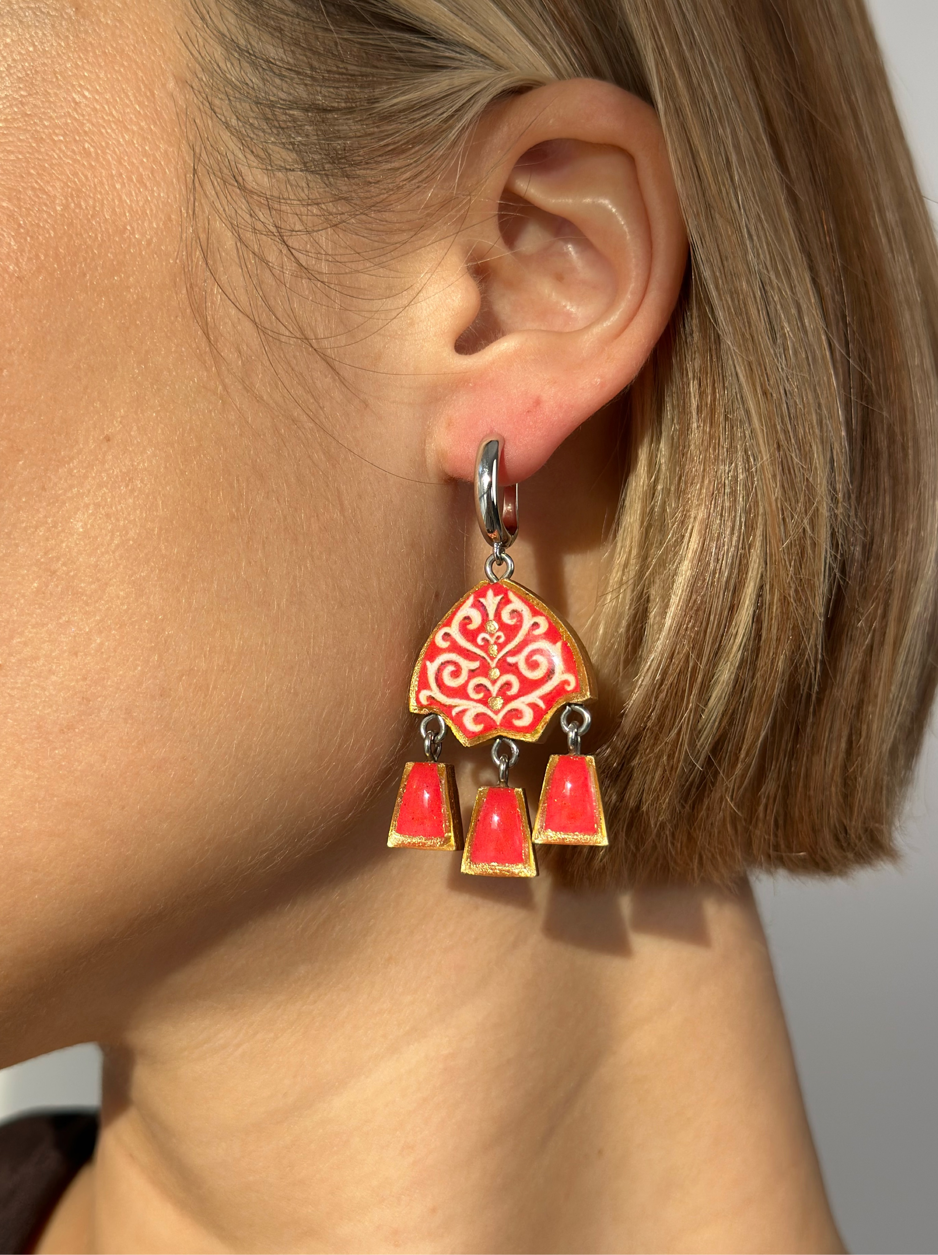 Бижутерия Raisa Plettserr - это всегда результат вдохновения и кропотливой ручной работы. Серьги деревянные, поэтому легкие несмотря на свои размеры. Поверх рисунка и задняя поверхность залиты ювелирной смолой. Задние и боковые поверхности золотистого цвета. Фурнитура родированная, такая фурнитура не темнеет и на 100% гипоаллергенна. Замок классический английский. Серьги продаются в красивой подарочной упаковке из дизайнерского картона, который не помнется при доставке.