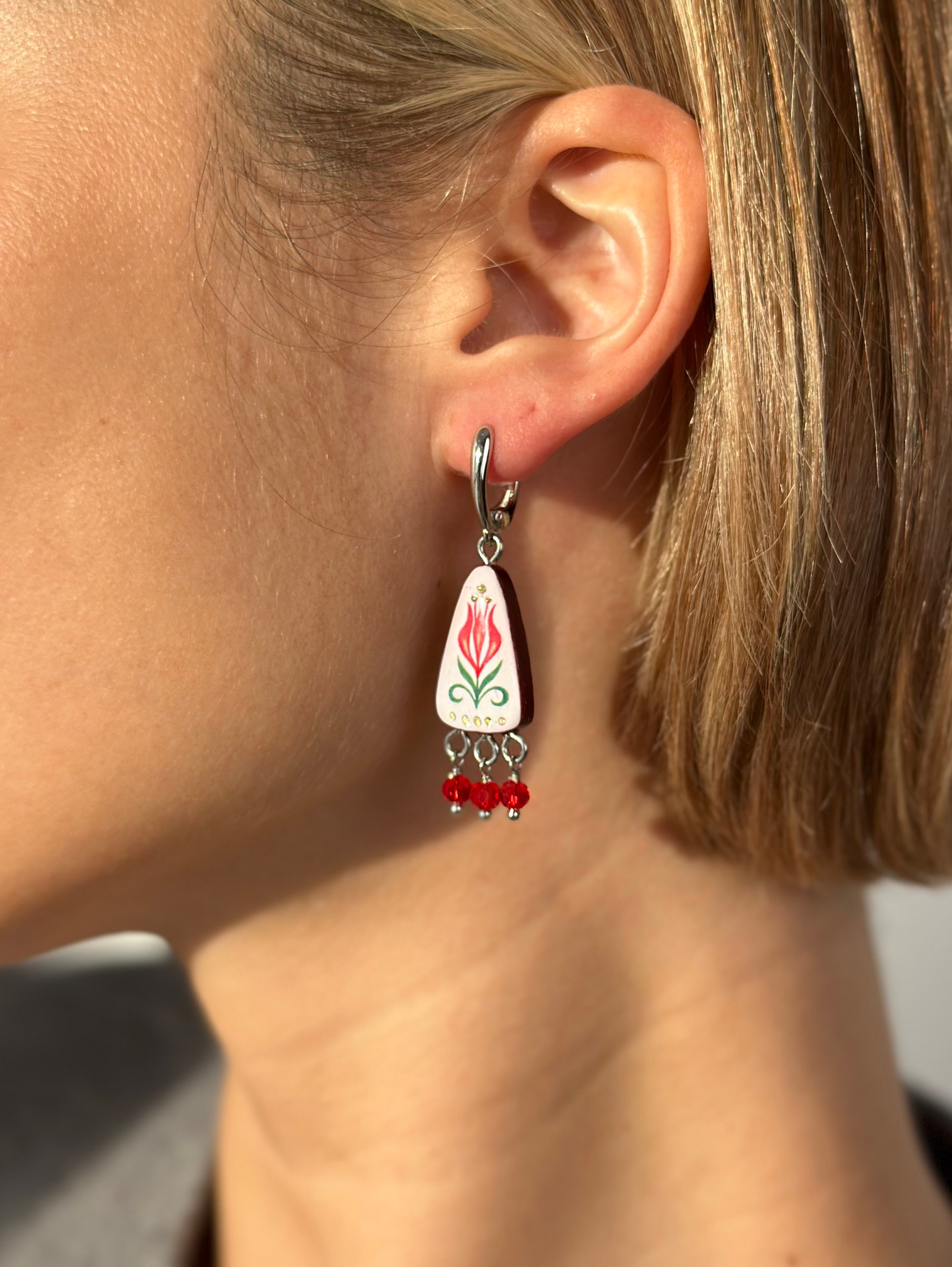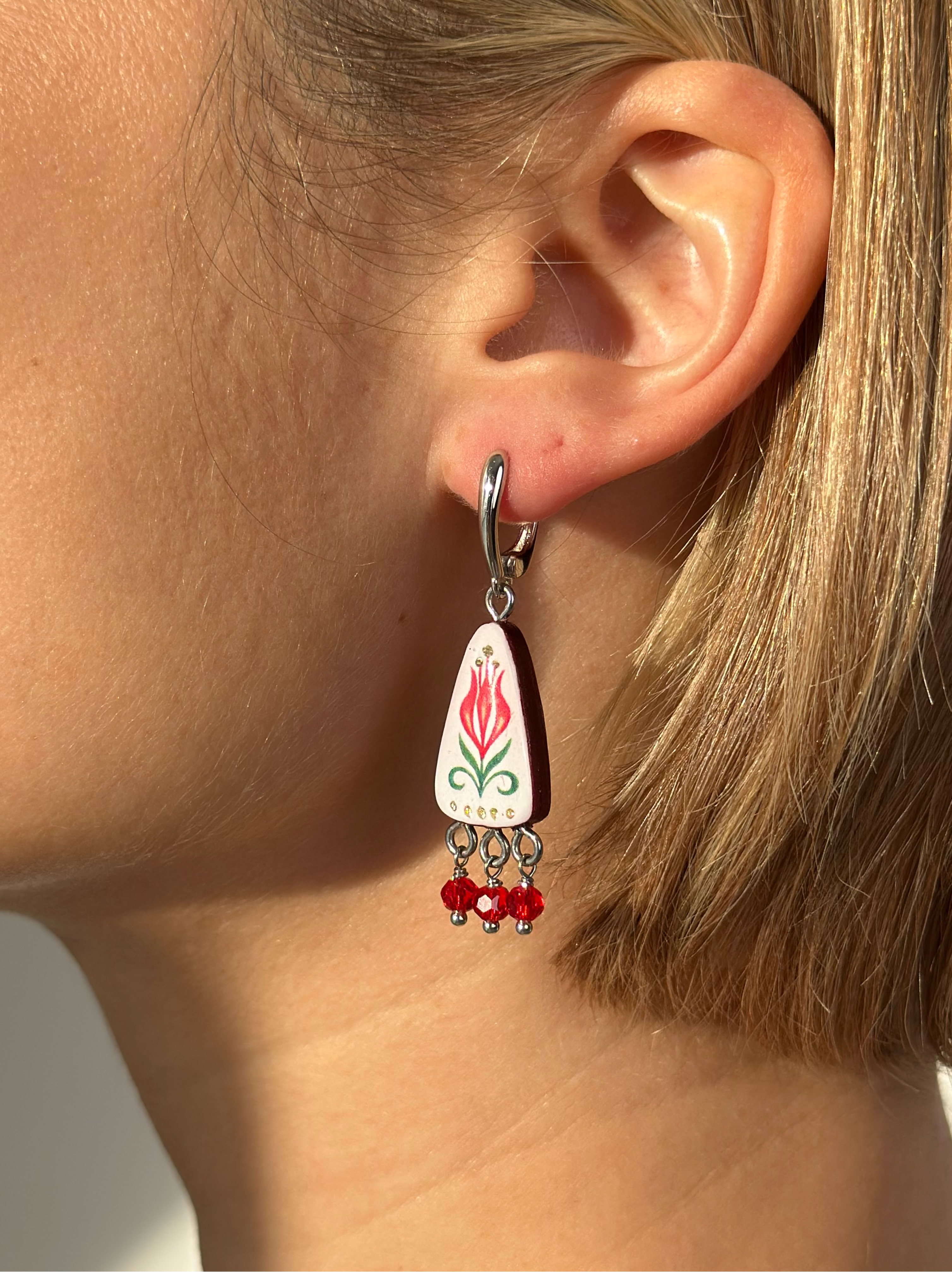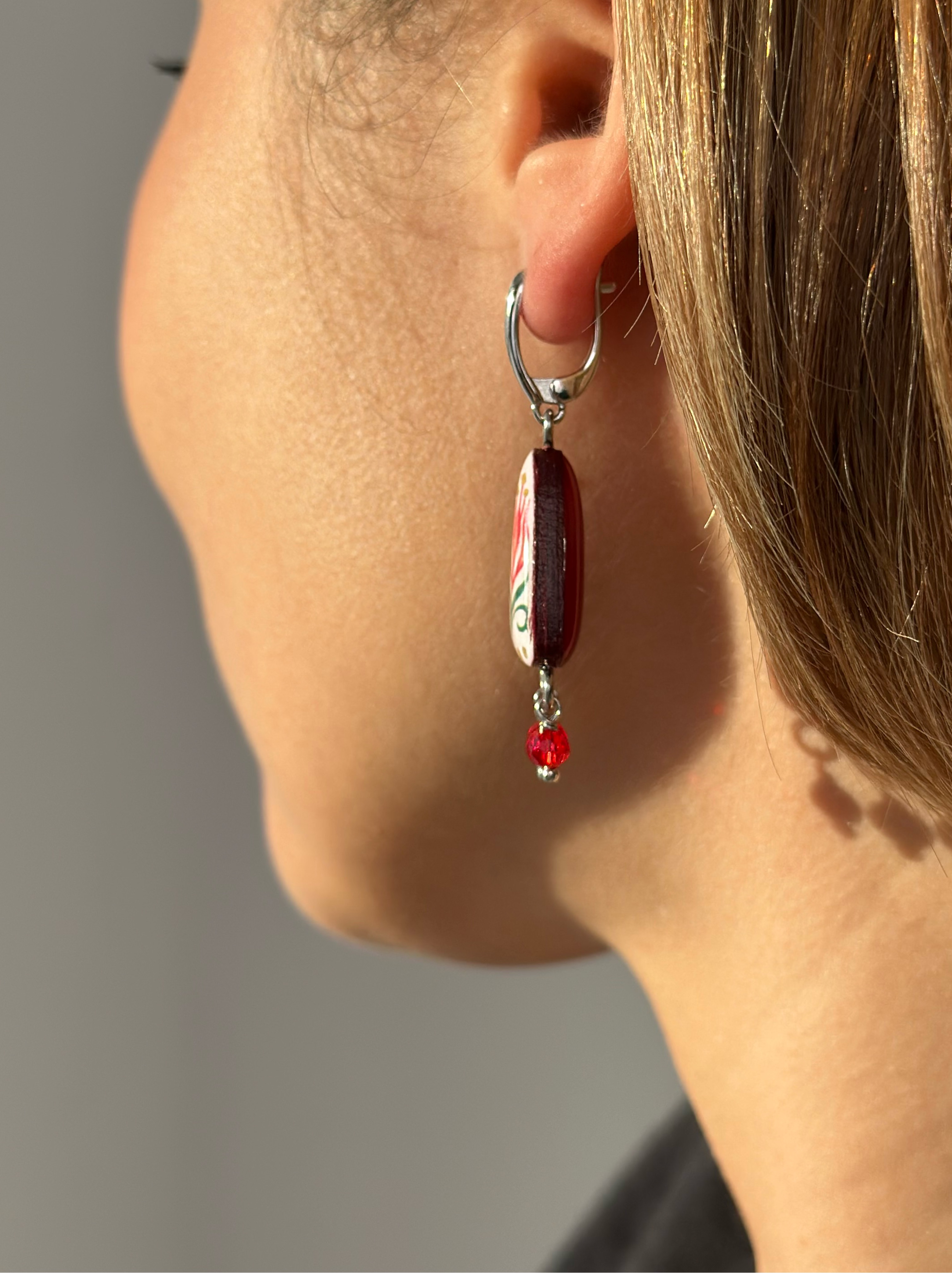 Бижутерия Raisa Plettserr - это всегда результат вдохновения и кропотливой ручной работы. Серьги деревянные, поэтому легкие несмотря на свои размеры. Поверх рисунка и задняя поверхность залиты ювелирной смолой. Задние и боковые поверхности красного цвета. Фурнитура родированная, такая фурнитура не темнеет и на 100% гипоаллергенна. Замок классический английский. Серьги продаются в красивой подарочной упаковке из дизайнерского картона, который не помнется при доставке.